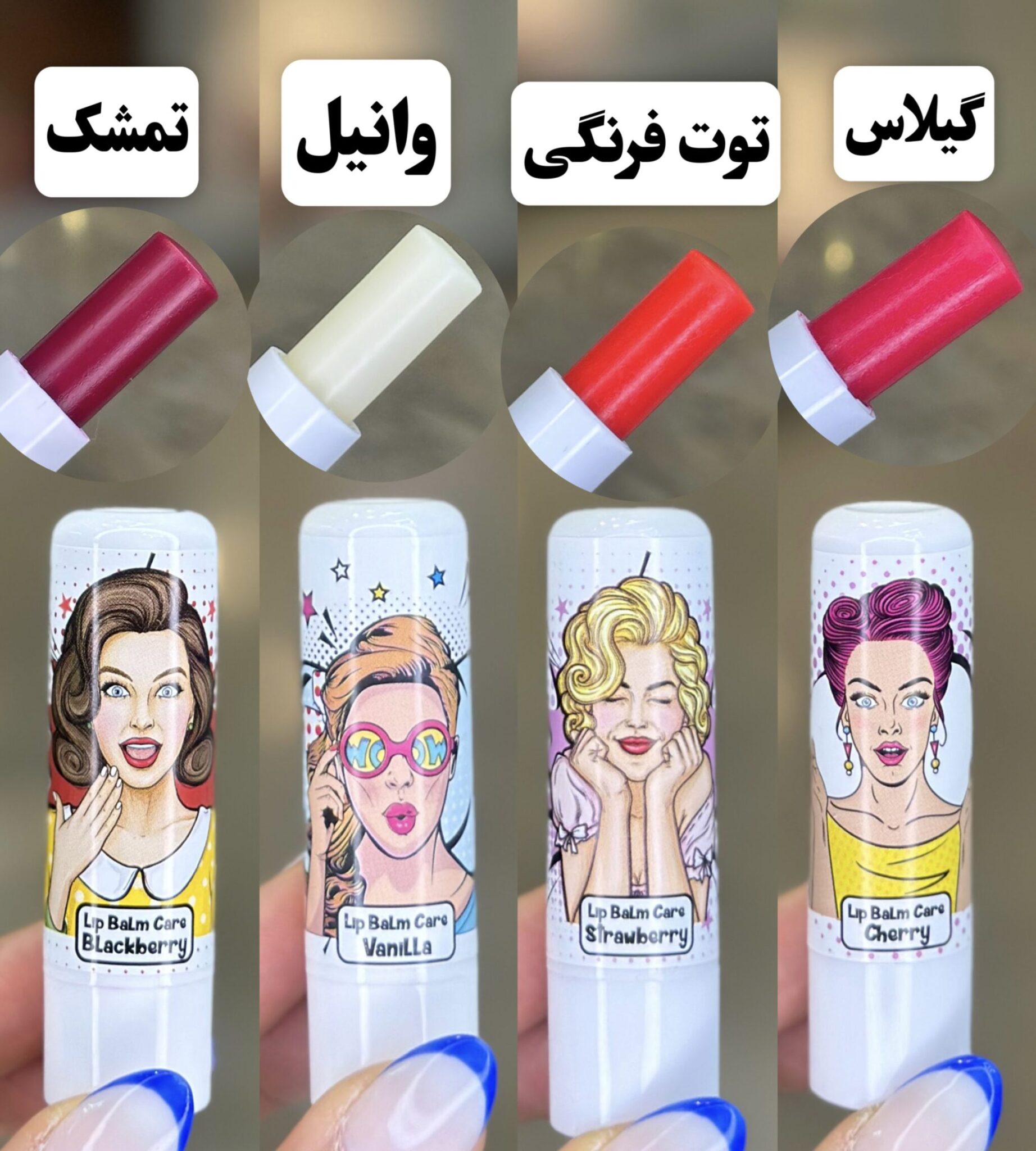 رایحه های جذاب: این بالم لبها در رایحههای مختلفی مانند توت فرنگی، گیلاس، وانیل و بلک بری عرضه می گردد که هر کدام علاوه بر محافظت، بوی دلنشینی به لبها می بخشد.