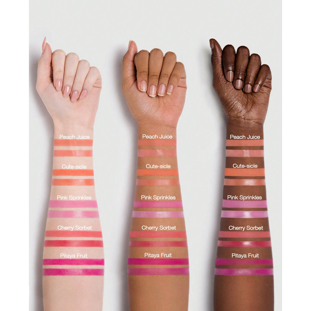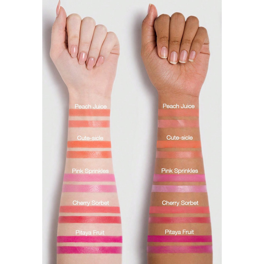 رنگبندی: PEACH JUICE (هلویی آبدار)، CUTE-SICLE (نارنجی ملایم)، PINK SPRINKLES (صورتی پاستلی)، CHERRY SORBET (قرمز گیلاسی)، PITAYA FRUIT (صورتی اژدهایی)