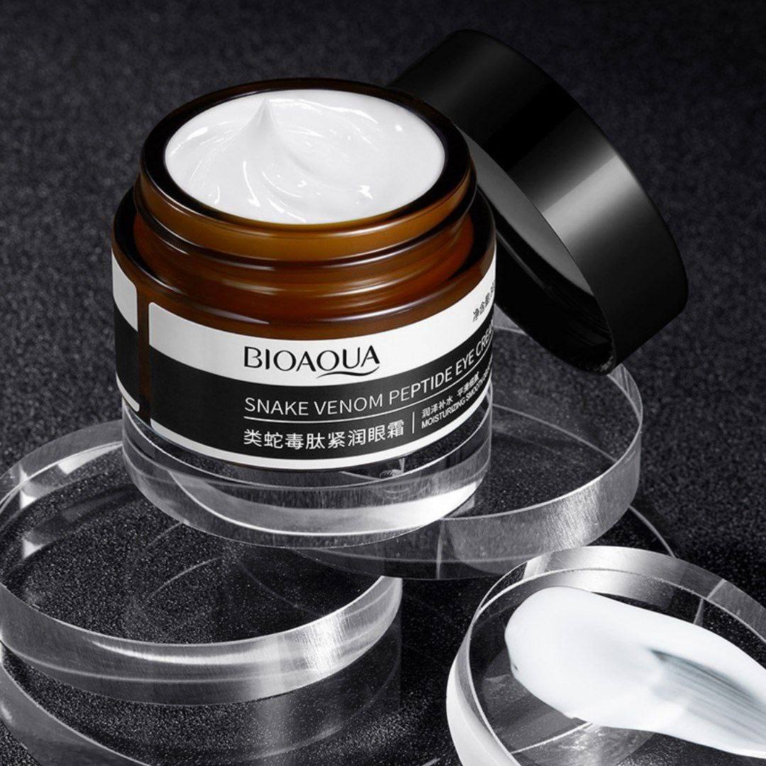 کرم دور چشم سم مار پپتاید، مخصوص پوست اطراف چشم می باشد. با استفاده مداوم از این کرم، از شر چین و چروک و خطوط ریز و کوچک دور و اطراف چشم های خود نجات پیدا خواهید کرد. همچنین نتیجه این کرم روی پوست مانند بوتاکس خواهد بود و بعد از استفاده، چهره ای بسیار جذاب، جوان و شاداب برای شما به هدیه می آورد. سم مار موجود در ساختار این محصول، ماده اصلی تشکیل دهنده بوتاکس بوده و ویژگی اصلی آن لیفتینگ پوست زیر چشم می باشد. استفاده از این کرم موجب جوانسازی، بازسازی آسیب های پوستی و حذف آثار پیری می گردد.